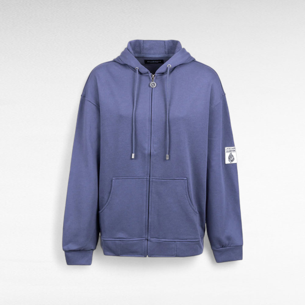 Ce sweat à capuche unisexe à manche longues avec capuche ajustable, ainsi qu’un zip en acier et patch écusson sur la manche droite est confectionné en coton.