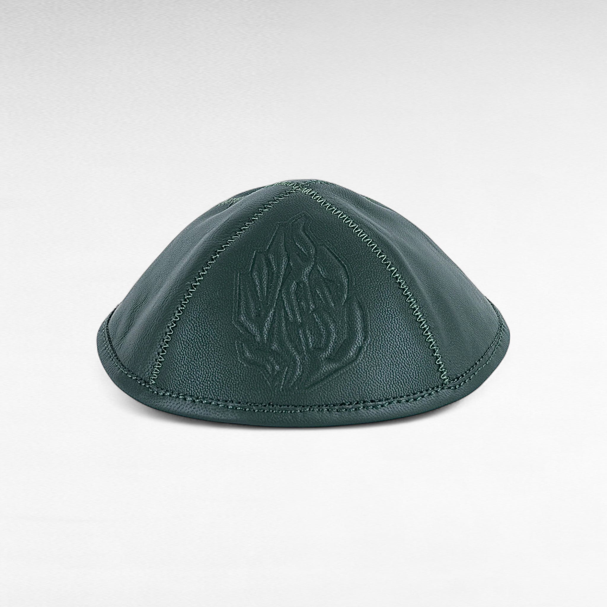 • Cette kippa de couleur kaki confectionnée en cuir façon croco s’accordera parfaitement à vos tenues quotidiennes. Pour mieux se distinguer d’une kippa traditionnelle, elle présente un [AESH SHELI] au centre.