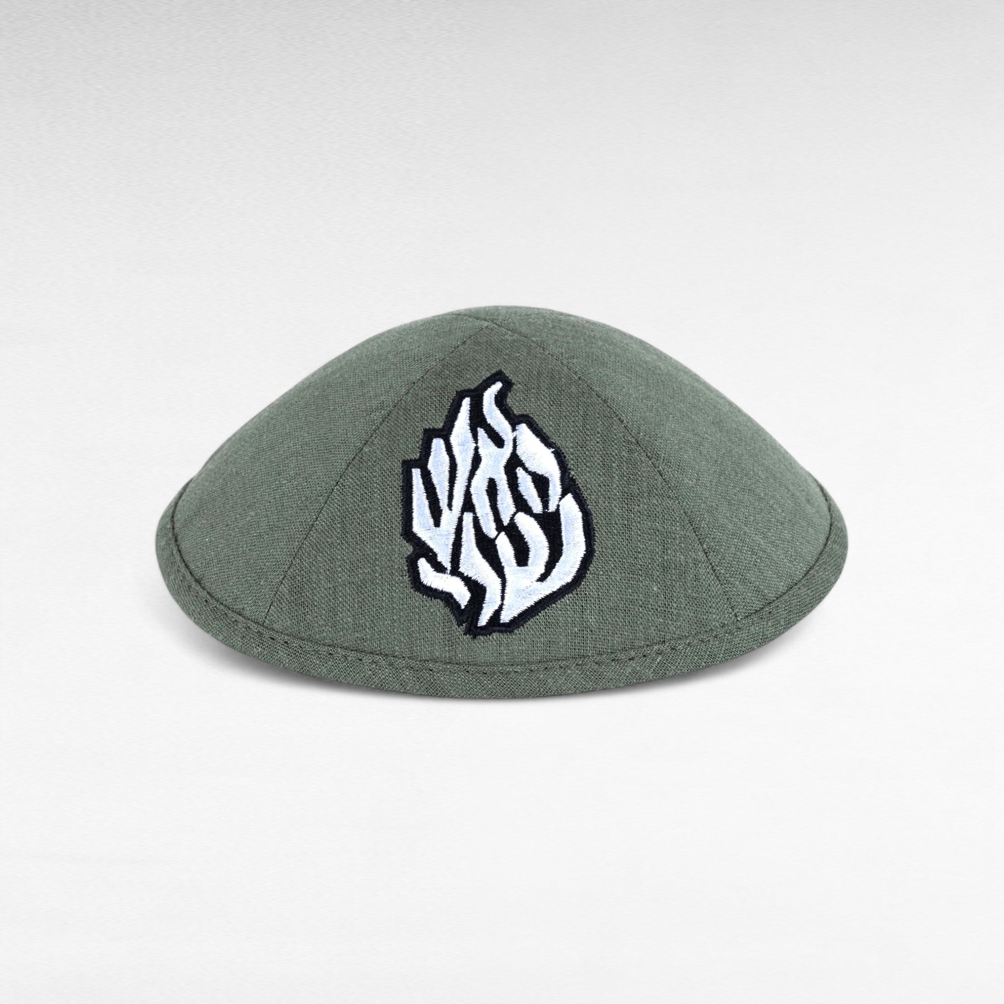 • Cette kippa de couleur kaki confectionnée en lin s’accordera parfaitement à vos tenues quotidiennes. Pour mieux se distinguer d’une kippa traditionnelle, elle présente un [AESH SHELI] de couleur beige brodé au centre.