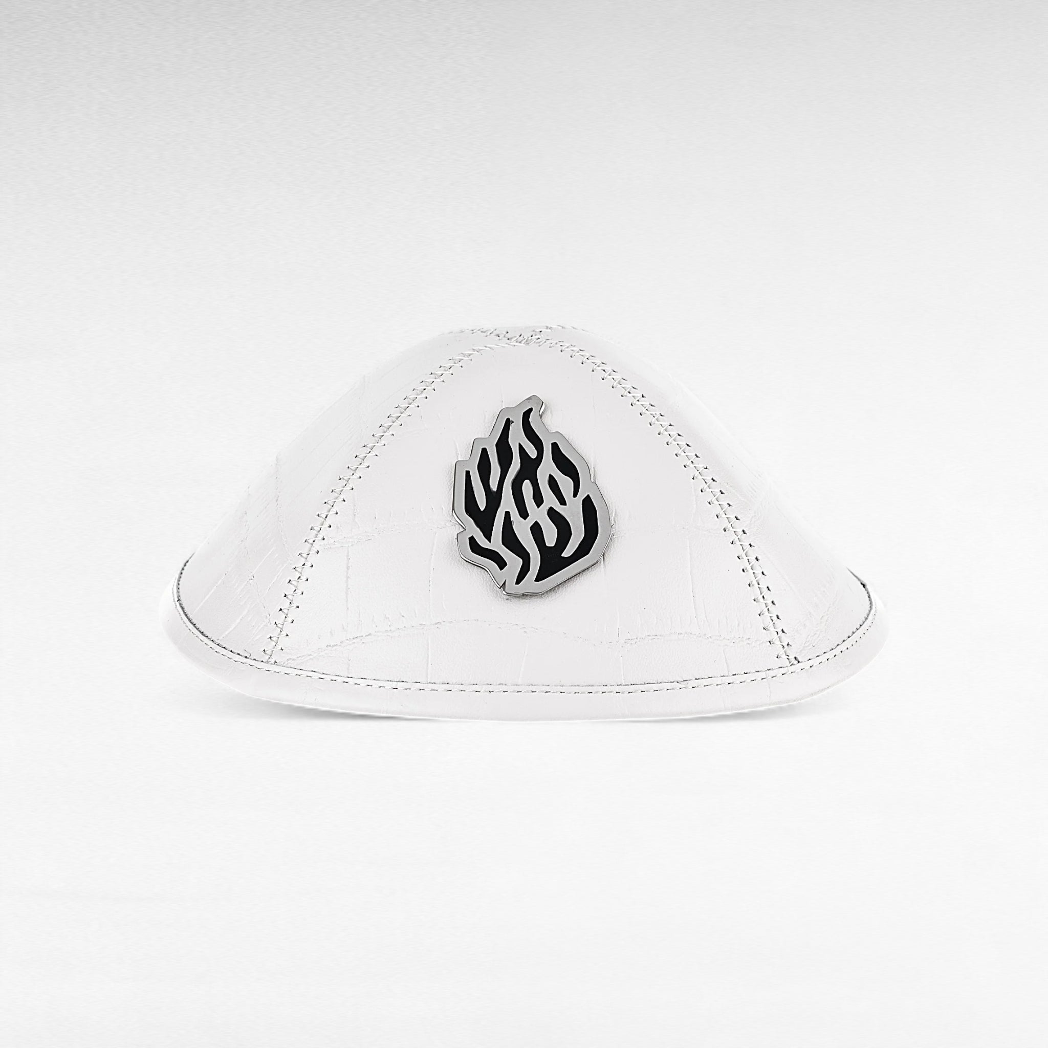 • Cette kippa de couleur noir confectionnée en cuir façon croco s’accordera parfaitement à vos tenues quotidiennes. Pour mieux se distinguer d’une kippa traditionnelle, elle présente un [AESH SHELI] au centre.