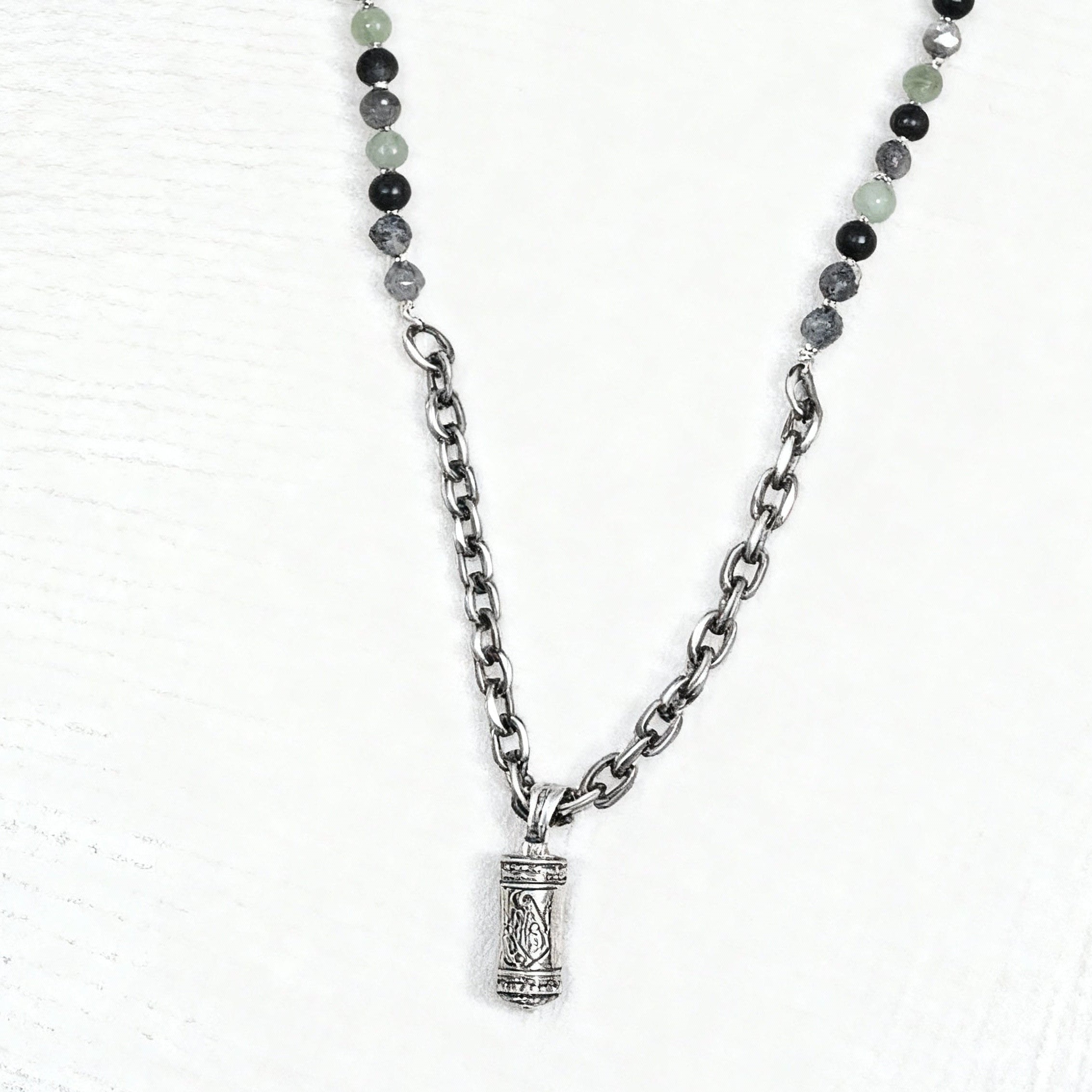 Each necklace is handmade from genuine semi-precious beads — agate, onyx, jasper and other natural stones carefully selected for their beauty and vibration.