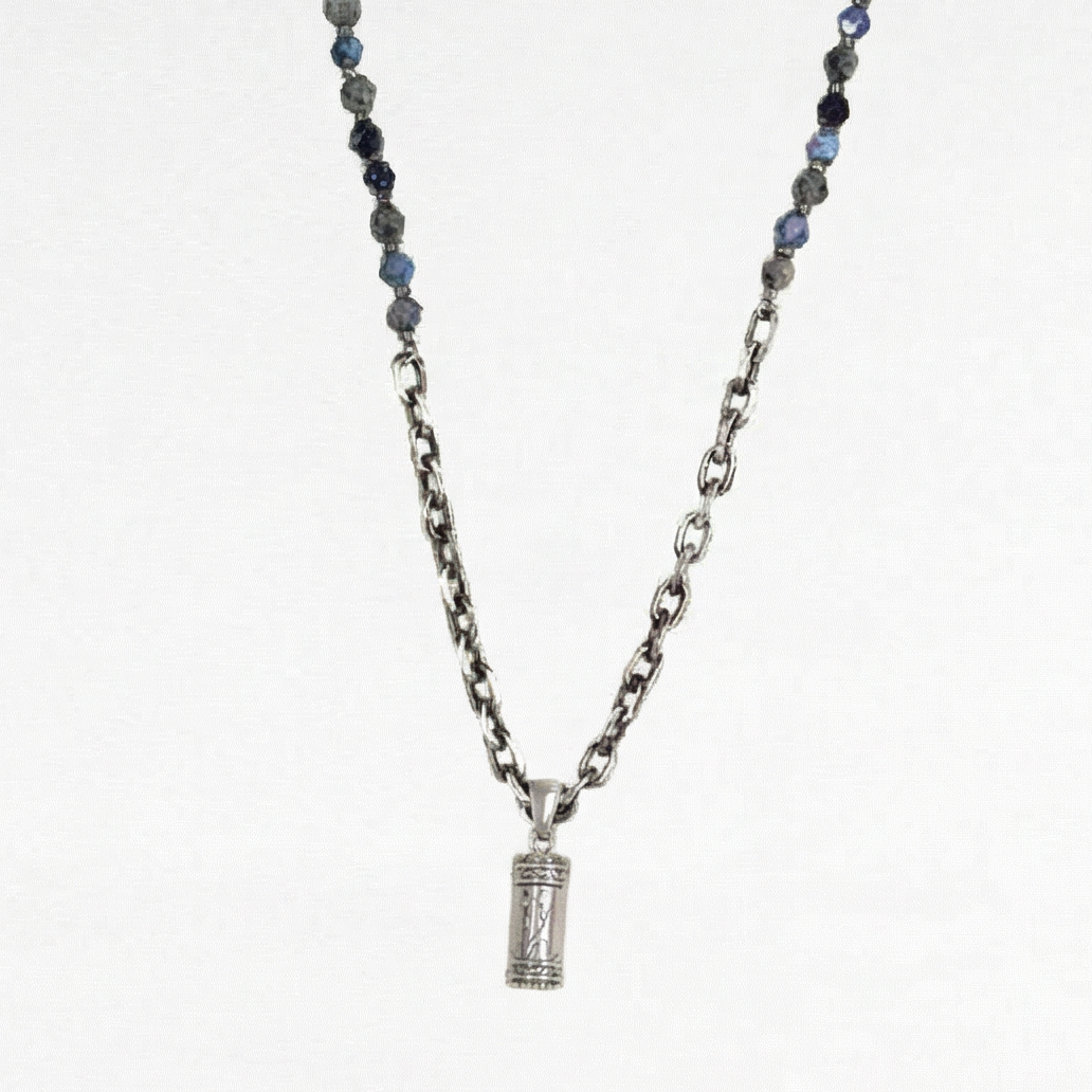 Sefer Ocean Necklace – Blue-grey beads & Petek amulet