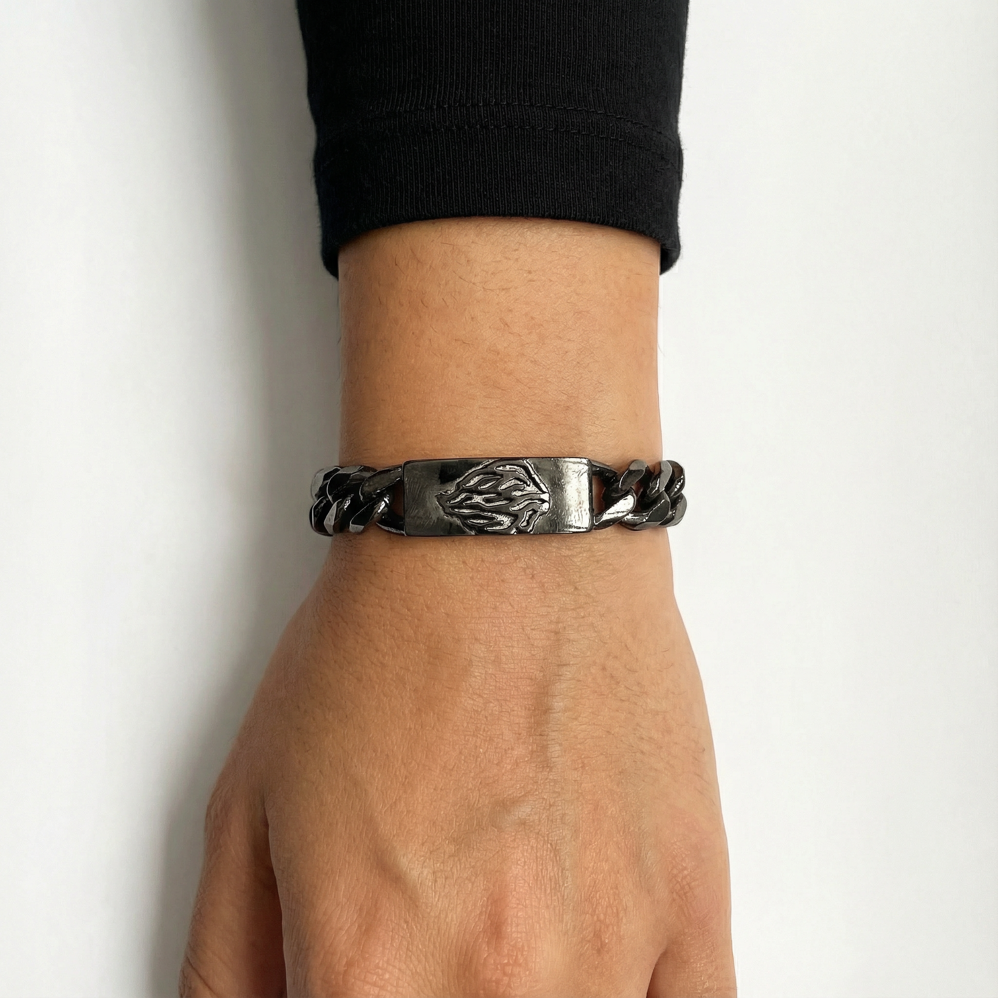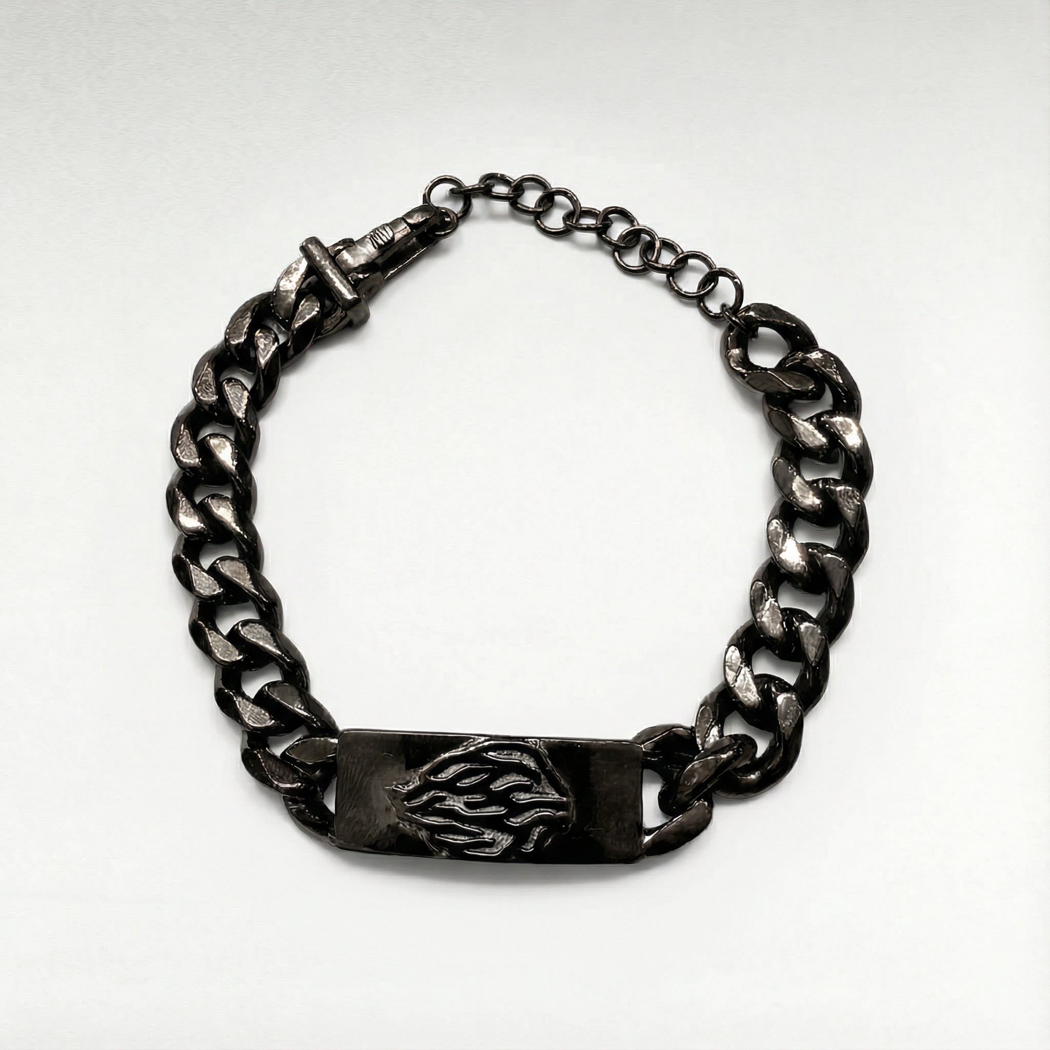 Powerful and timeless, this blackened stainless steel bracelet embodies strength and character.