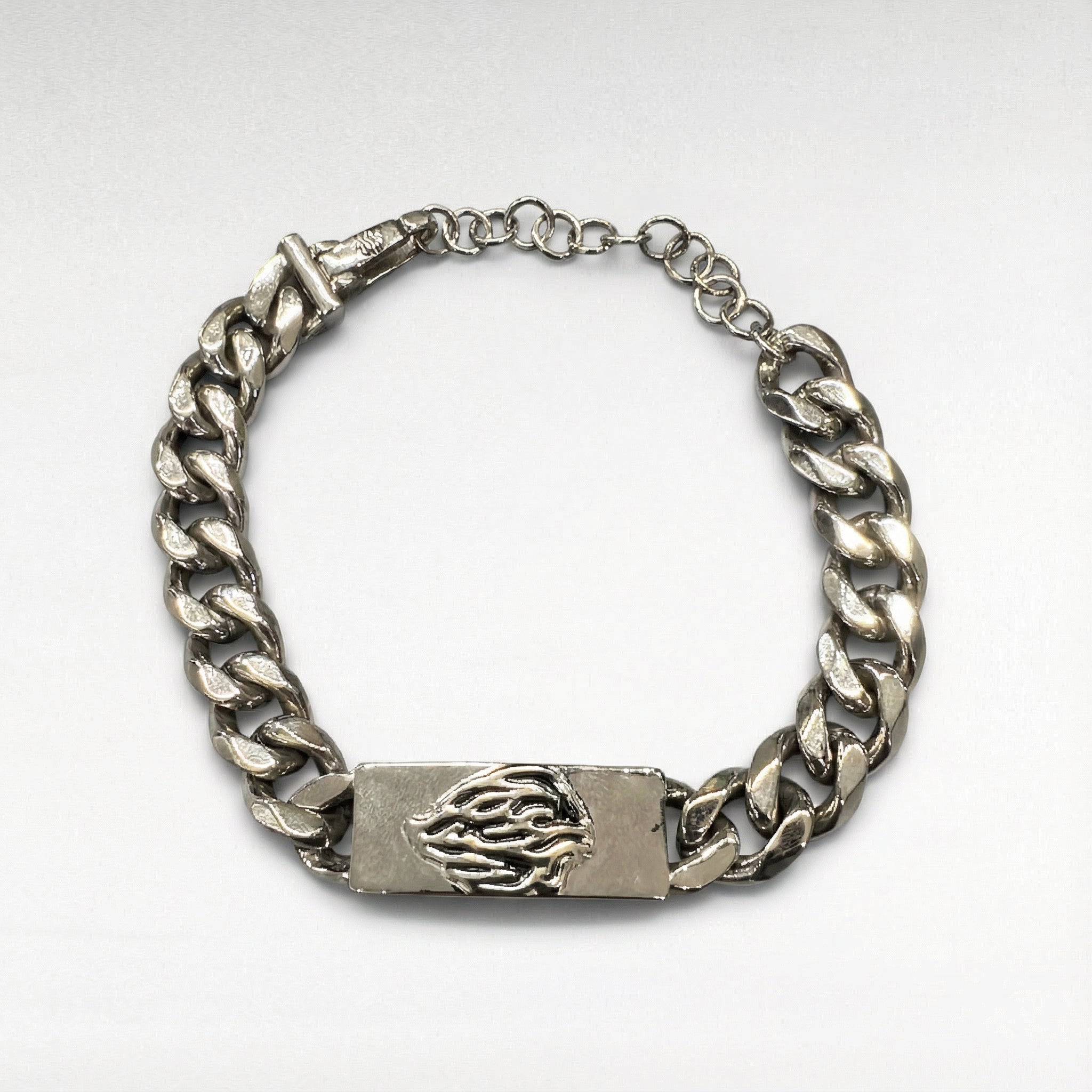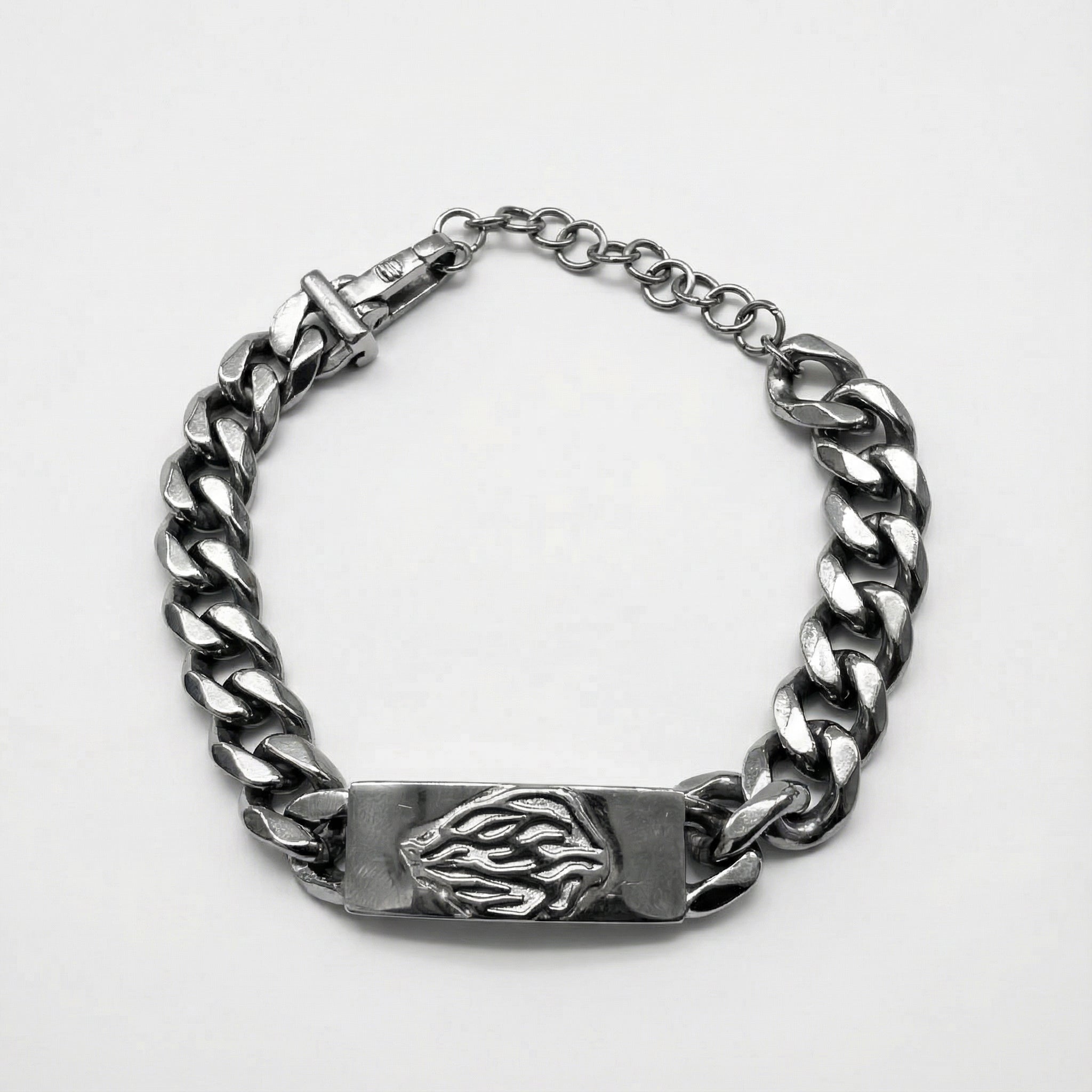 Its thick link and central plate engraved with the symbol of AECH CHELI make it a piece of jewelry that is both spiritual and assertive.