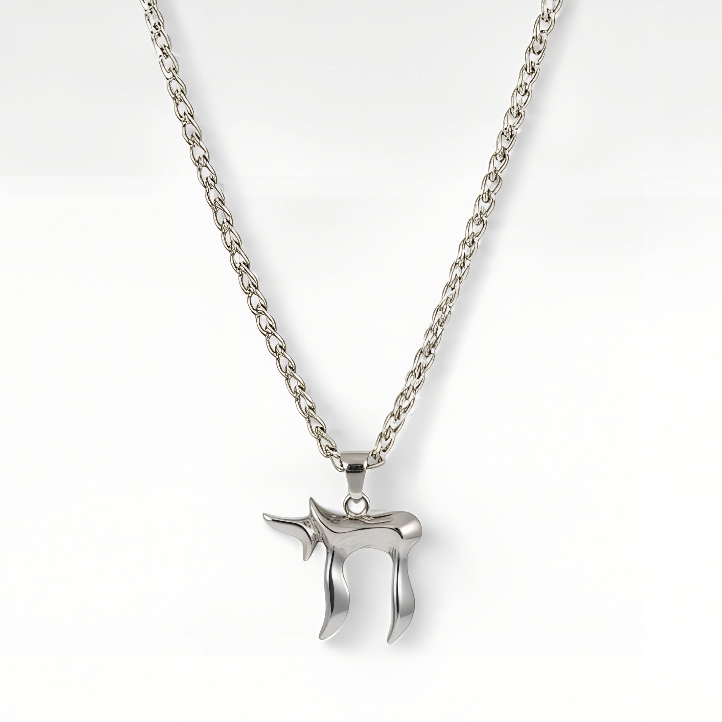 Discover the “Hai” pendant—a Hebrew symbol for life—reimagined in a luminous and timeless silver finish. This large design embodies a modern, refined, and deeply symbolic style, perfect for a bold everyday look.