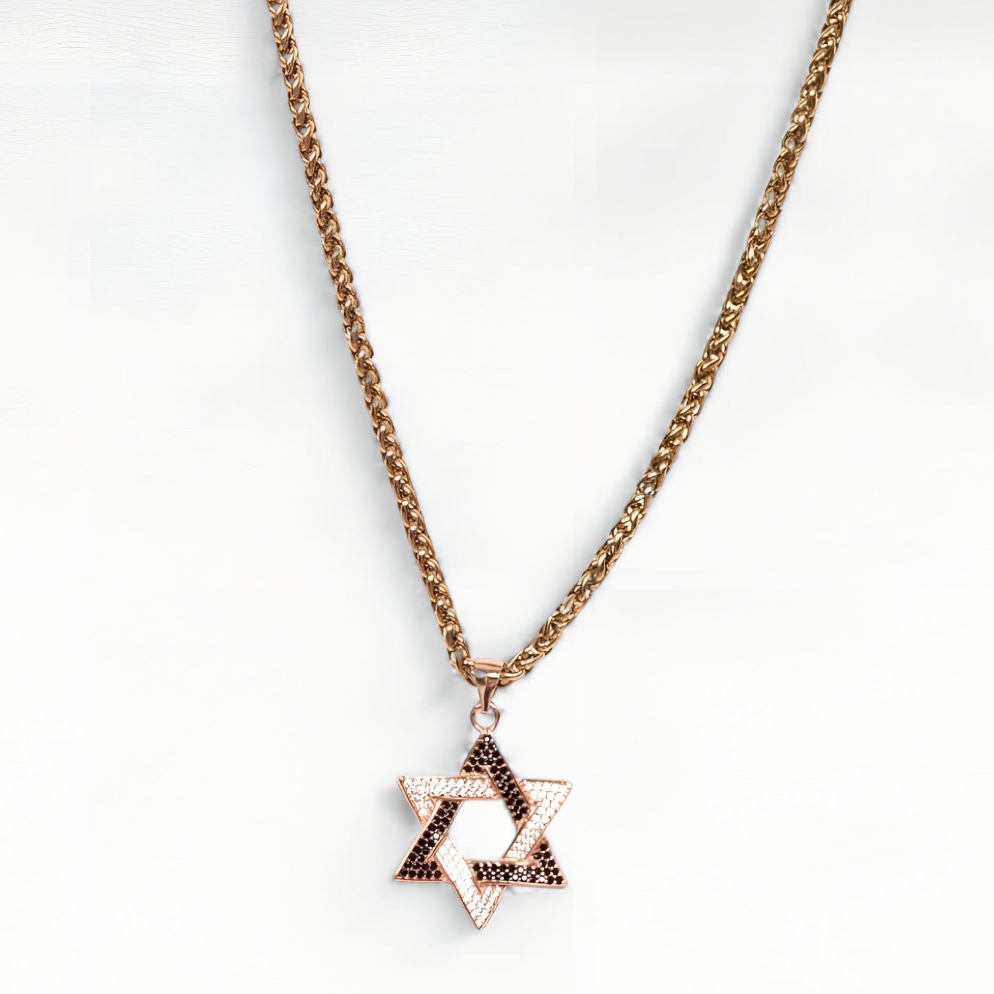 Magen David Rose Gold Diamond Necklace – Pave Cubic Zirconia & Gold Stainless Steel Chain