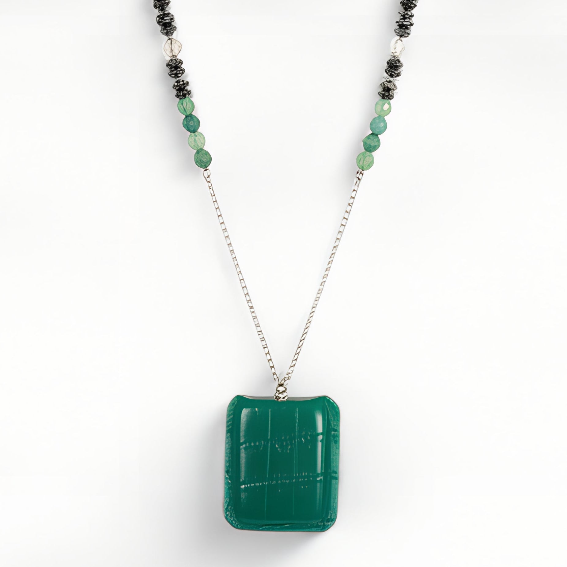 Sefer Green Necklace – Green Beads & Petek Amulet