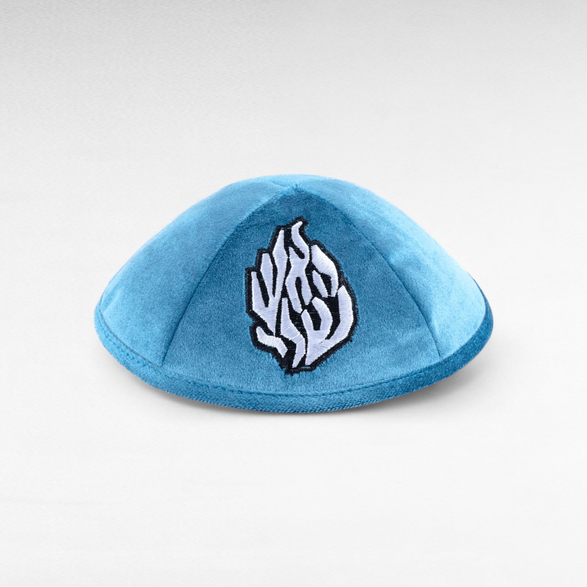Kippa en velours Bleu ciel – Broderie Aech Sheli