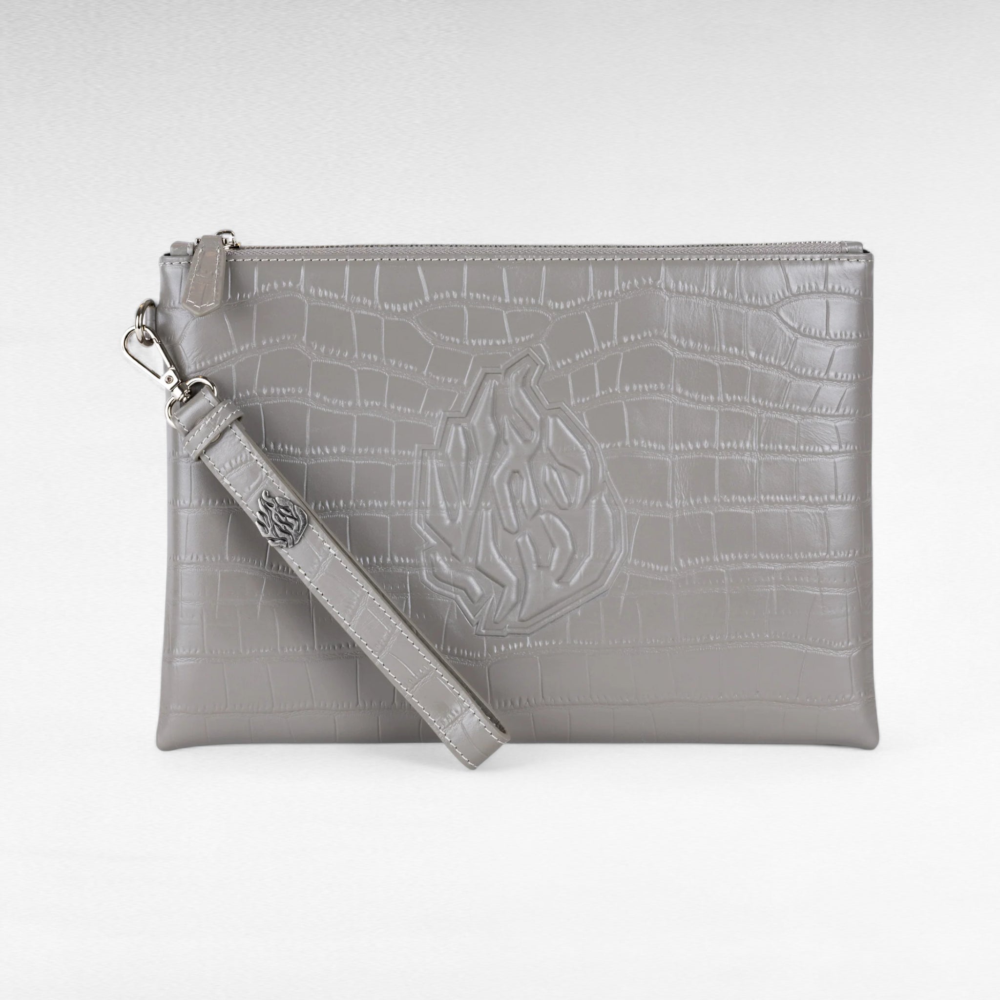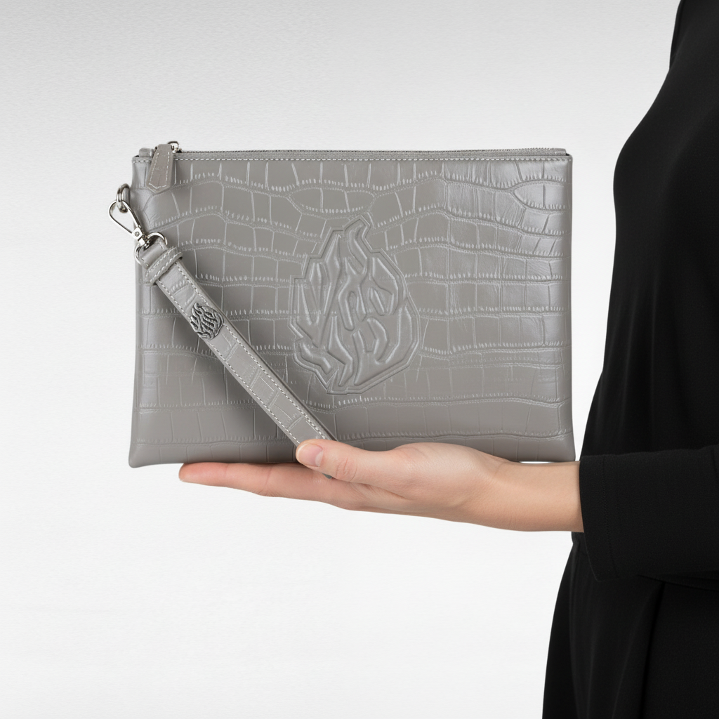 Glossy grey leather travel pouch – Croco edition