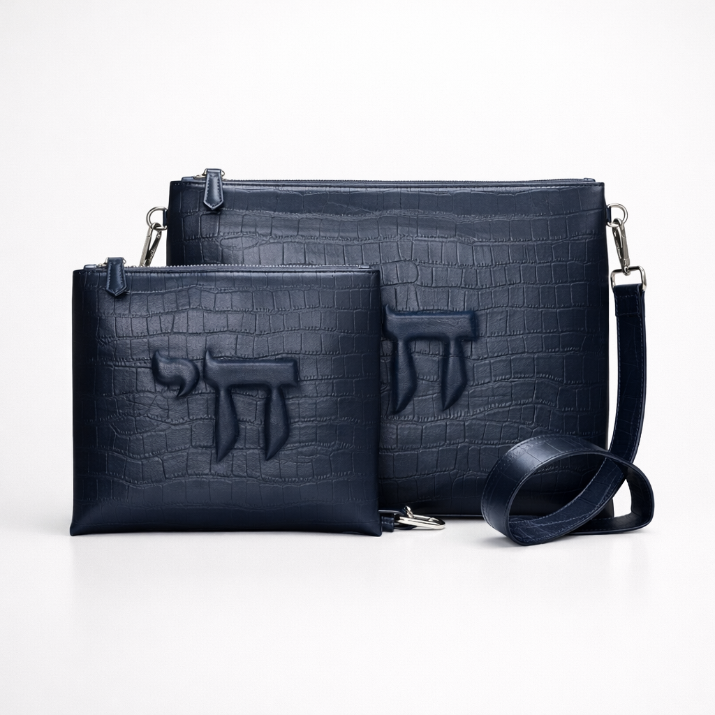 Set Tallit & Téfilines en Bleu marine croco– hai