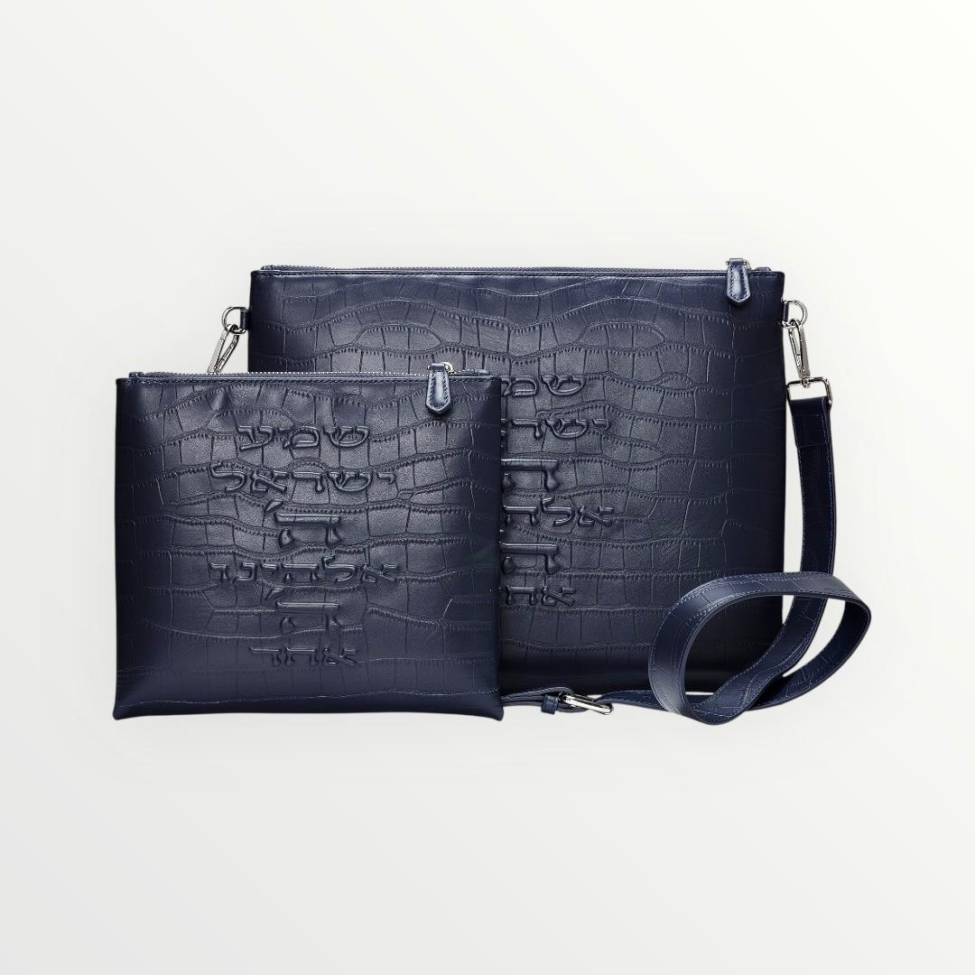 Set Tallit & Téfilines en cuir Bleu marine croco – Maguen david