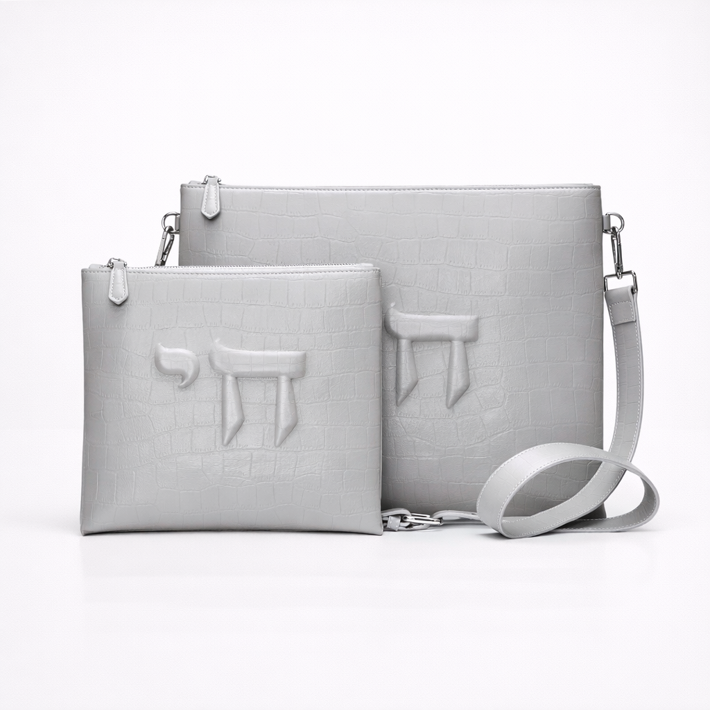 Set Tallit & Téfilines en cuir Gris croco mat – hai