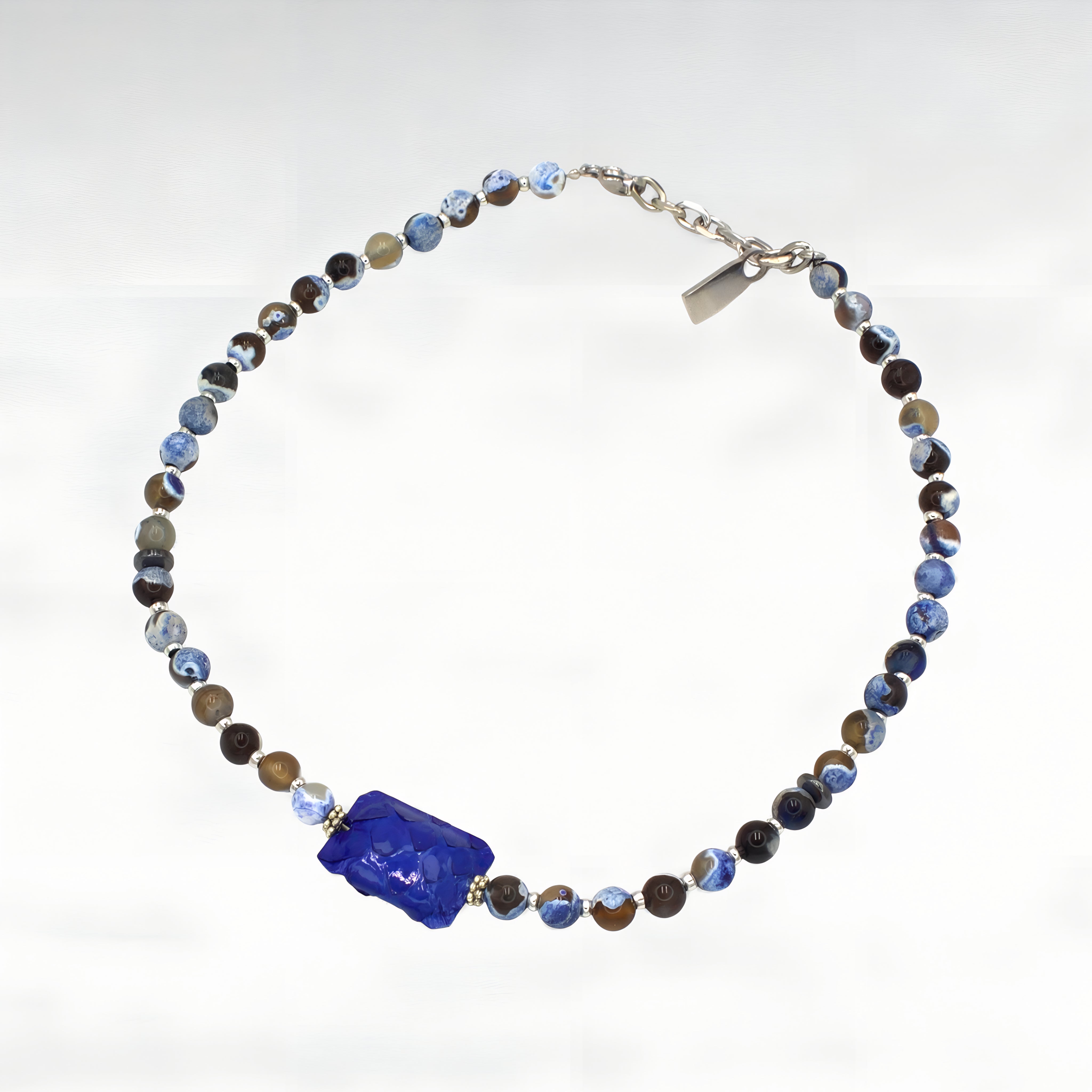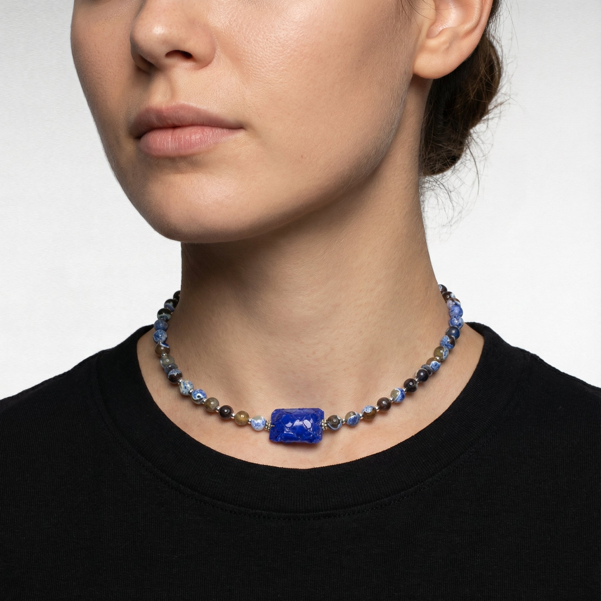 • שרשרת קולר עם חרוזי אגת חצי־יקרים בגווני כחול וצבעים עדינים