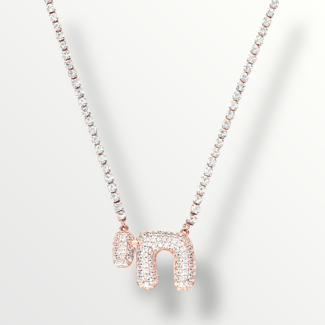 Le pendentif est serti de zirkonium et suspendu à une élégante chaîne rivière .