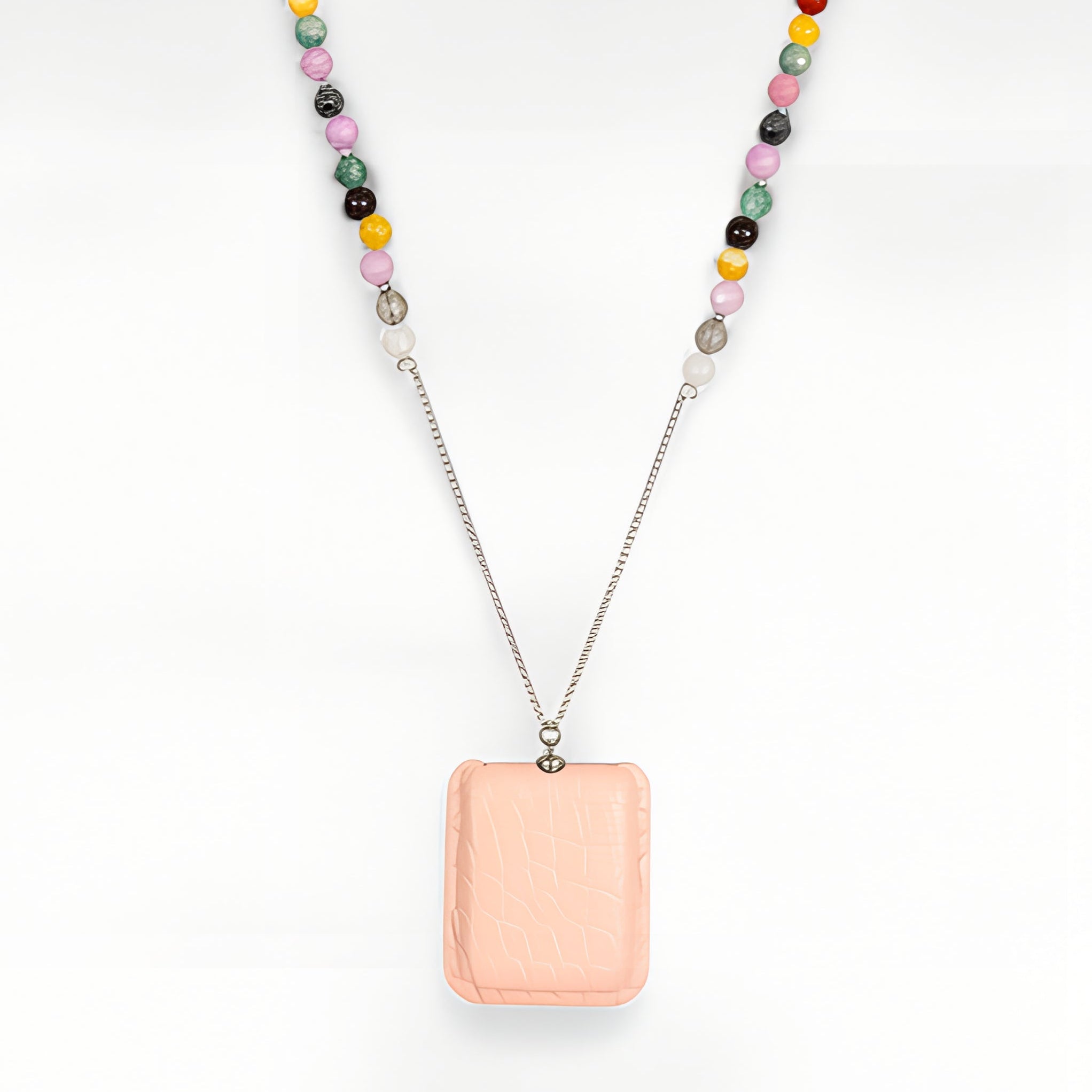 שרשרת ספר פסטל – חרוזים בגוונים רכים וקמע פתק