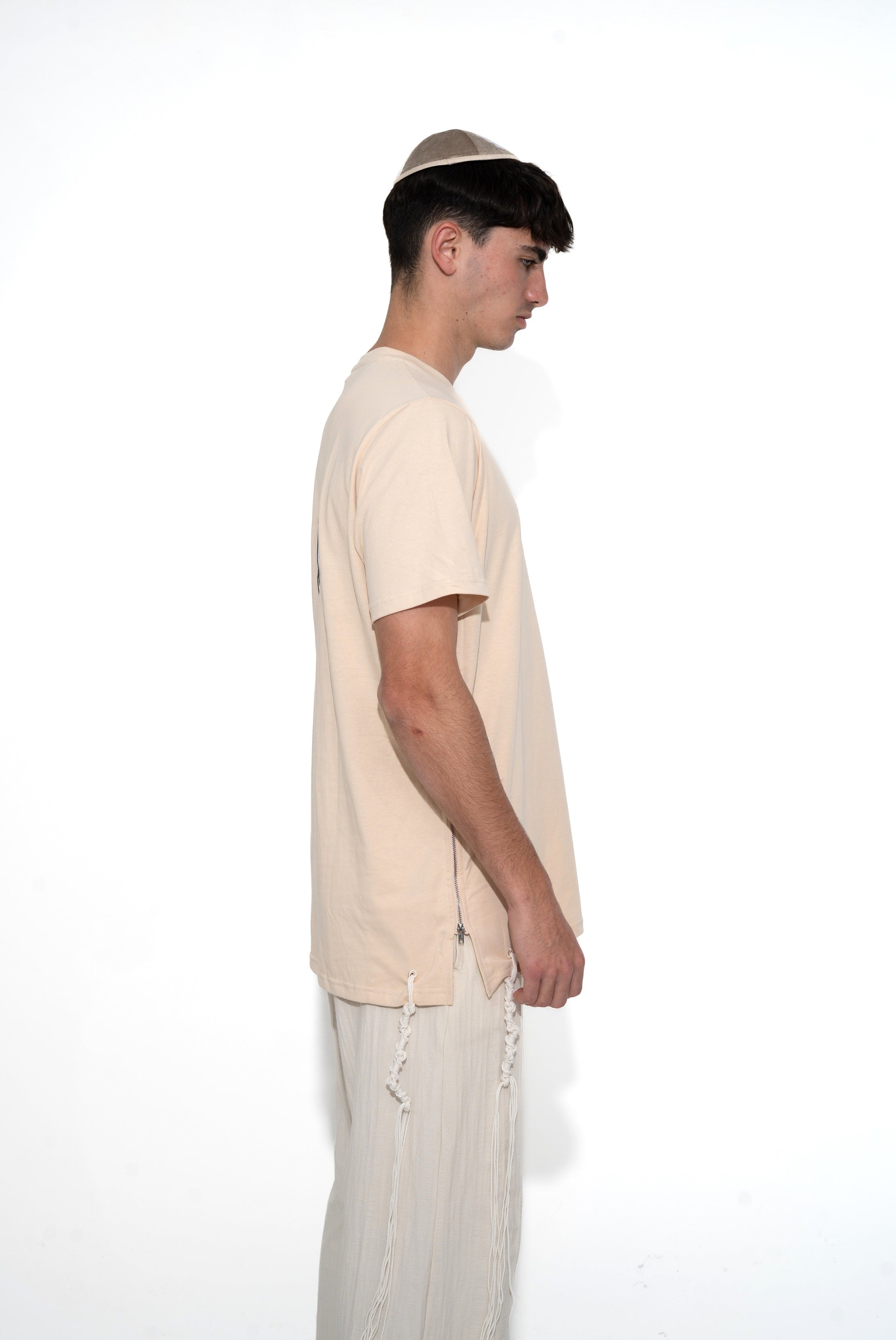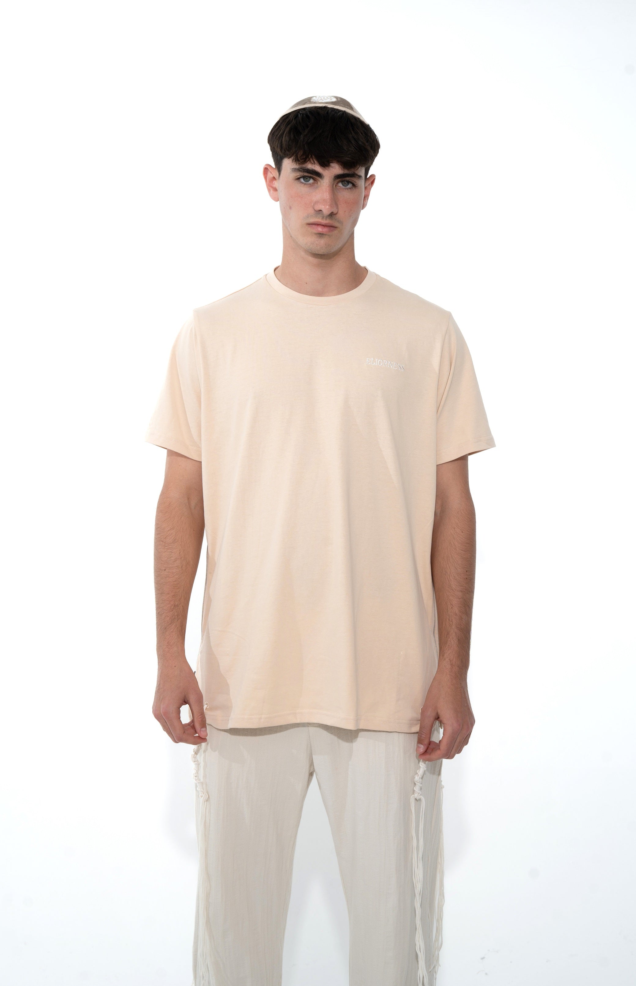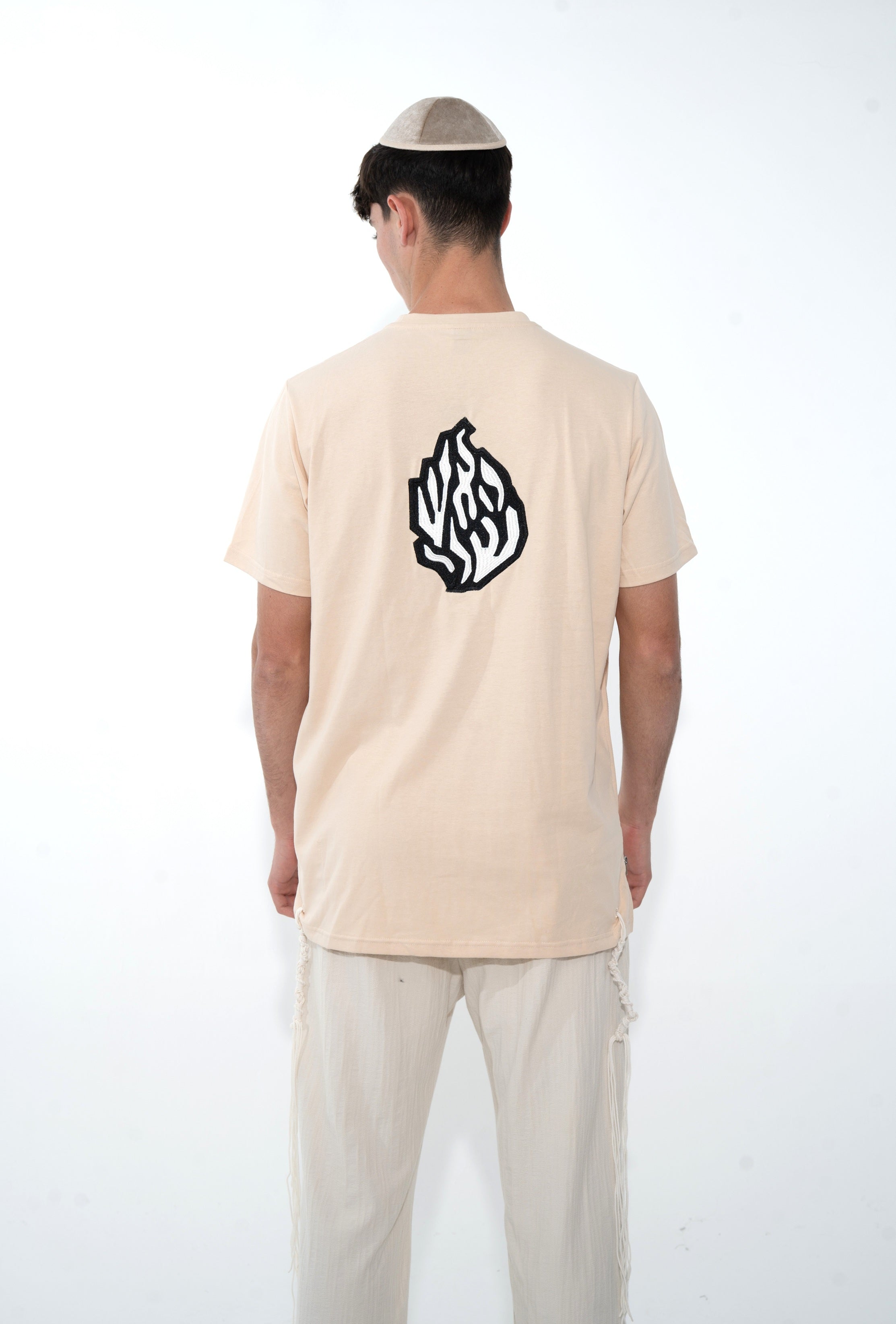 חולצת טי-שירט: בז' להבה שחורה
