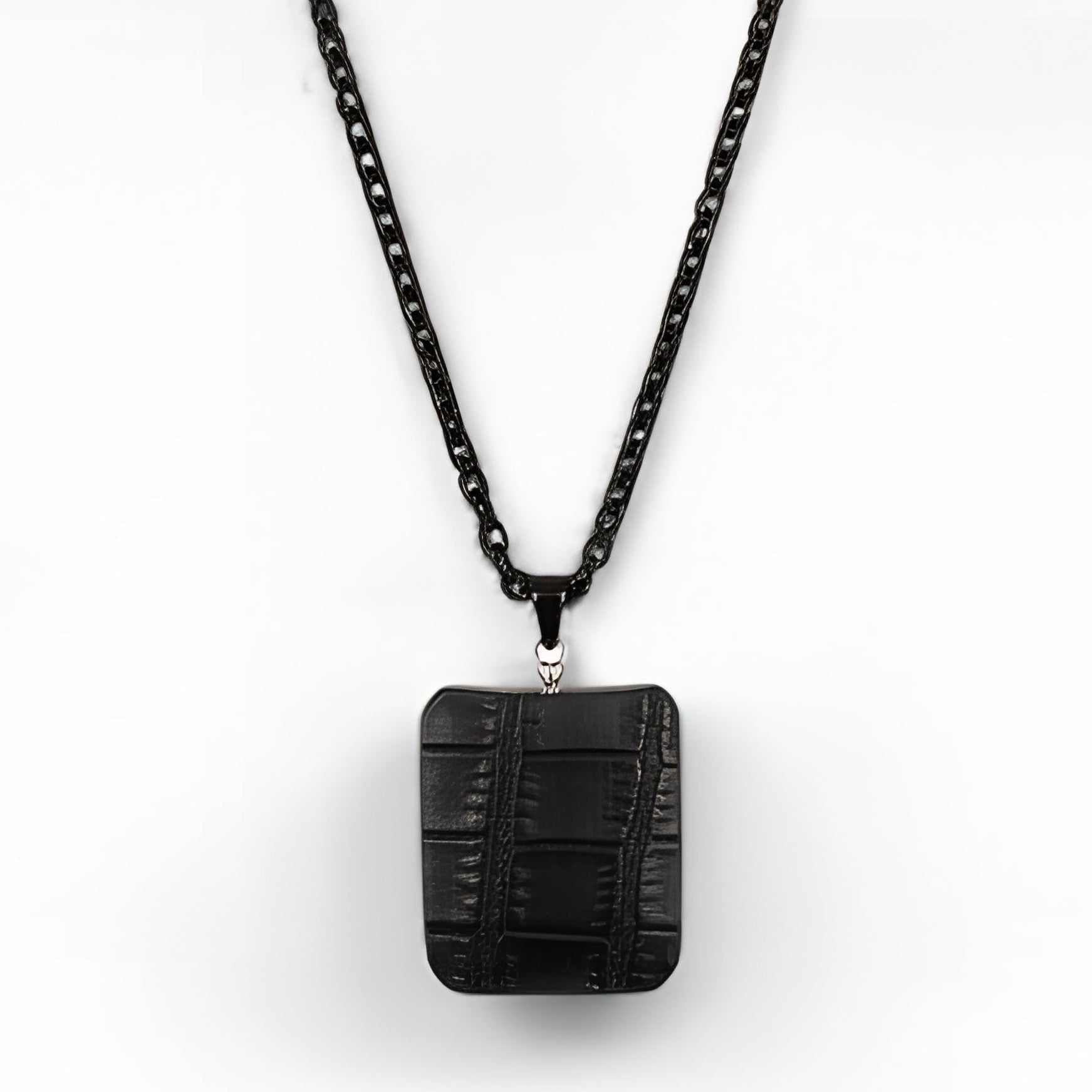 Collier Petek Noir – Amulette noire & chaîne inox noire