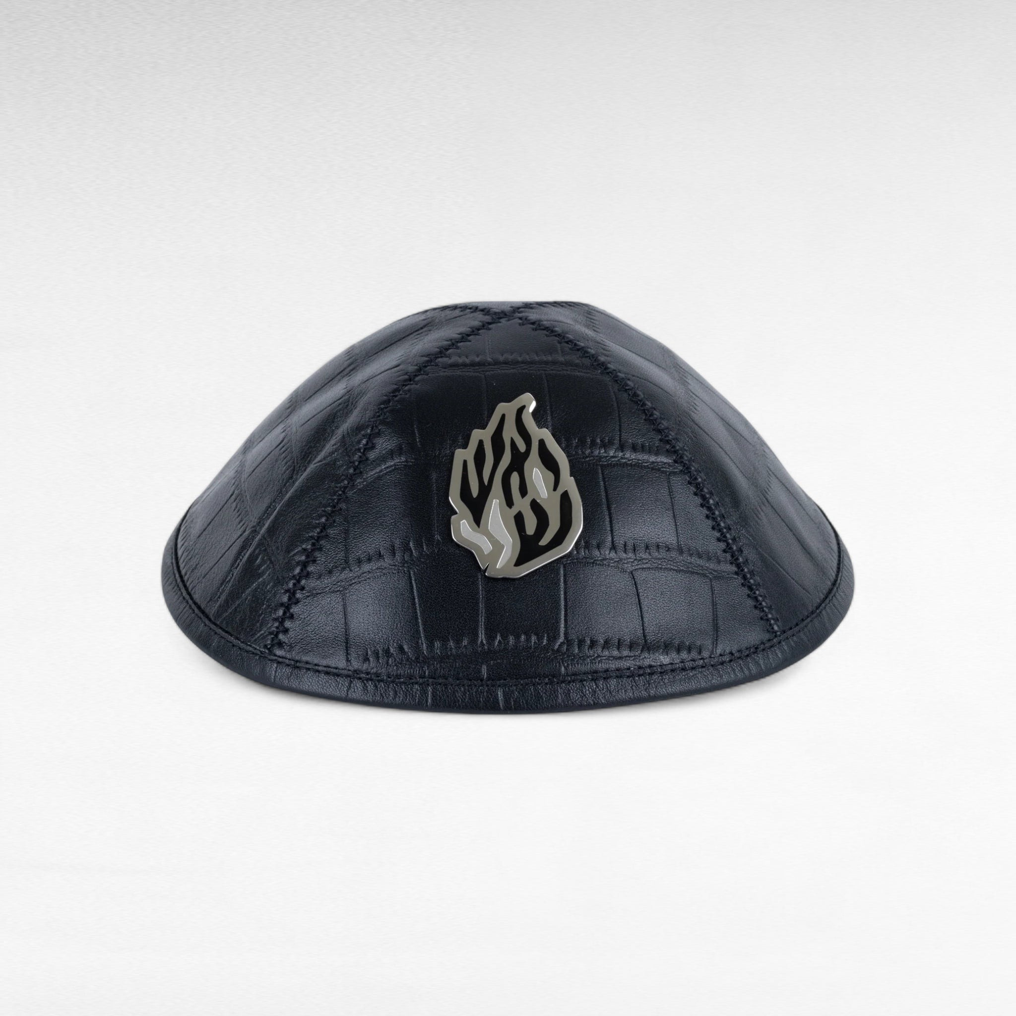 Kippa cuir croco Noir – Broderie Aech Sheli