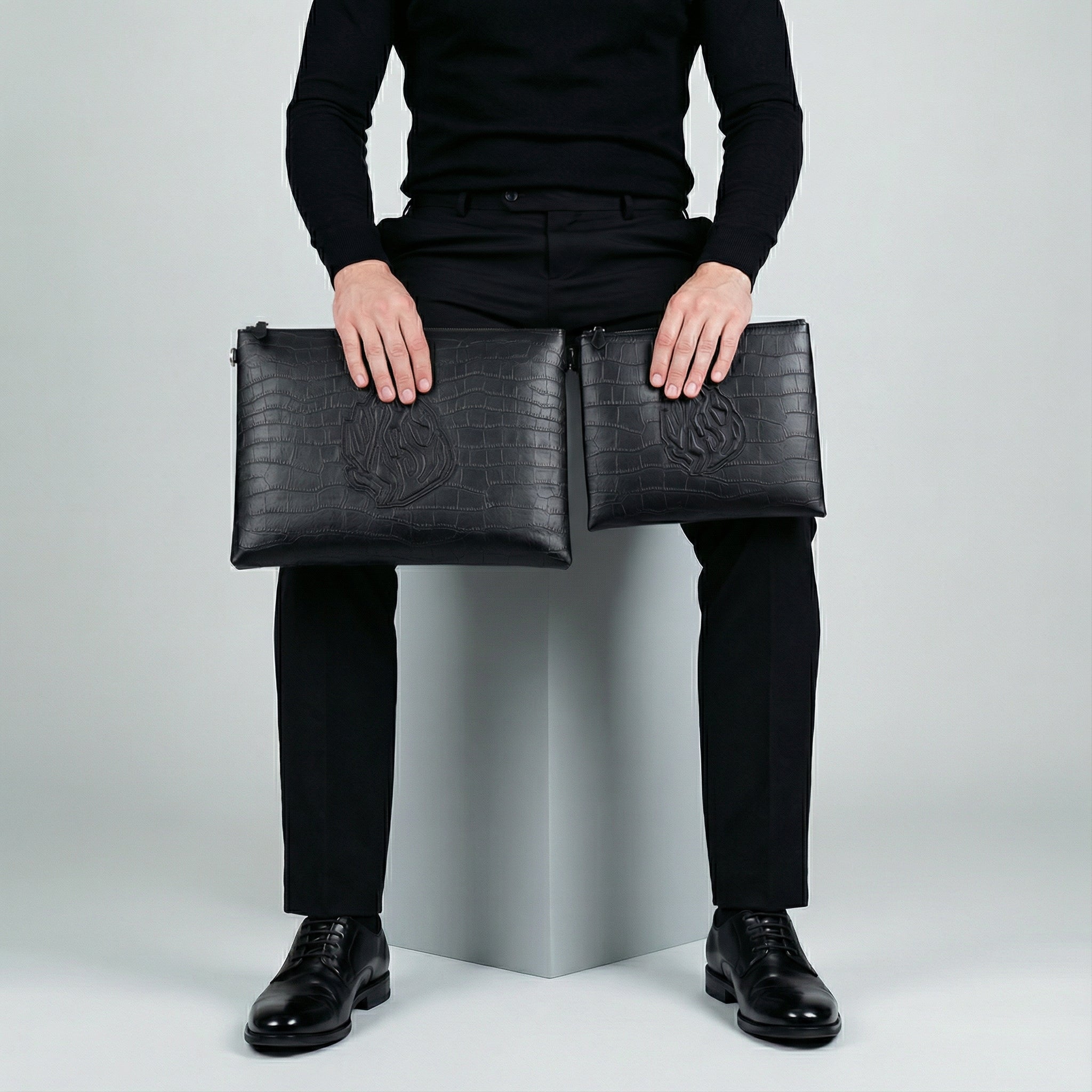 Set Tallit & Téfilines en cuir noir croco Aech sheli
