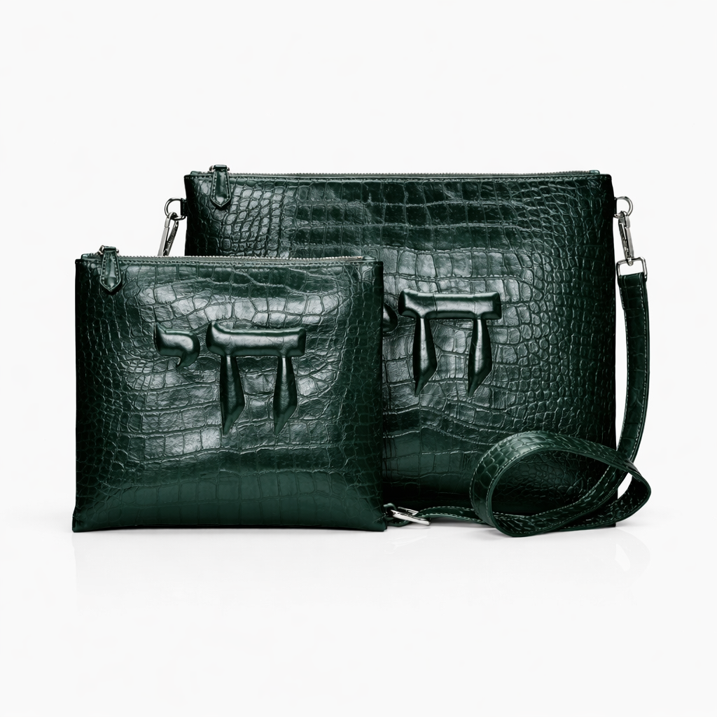Set Tallit & Téfilines en cuir Vert émeraude croco– hai