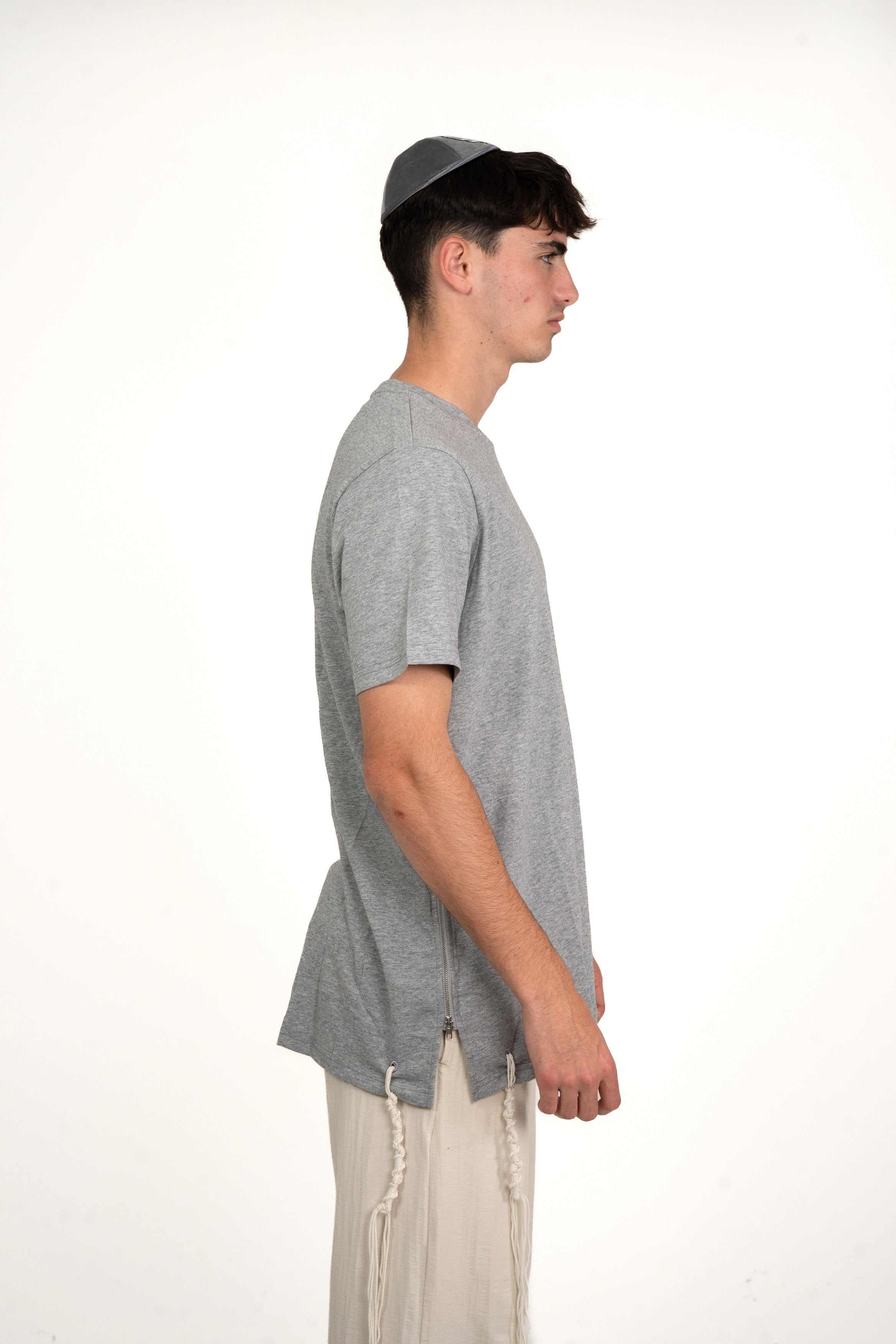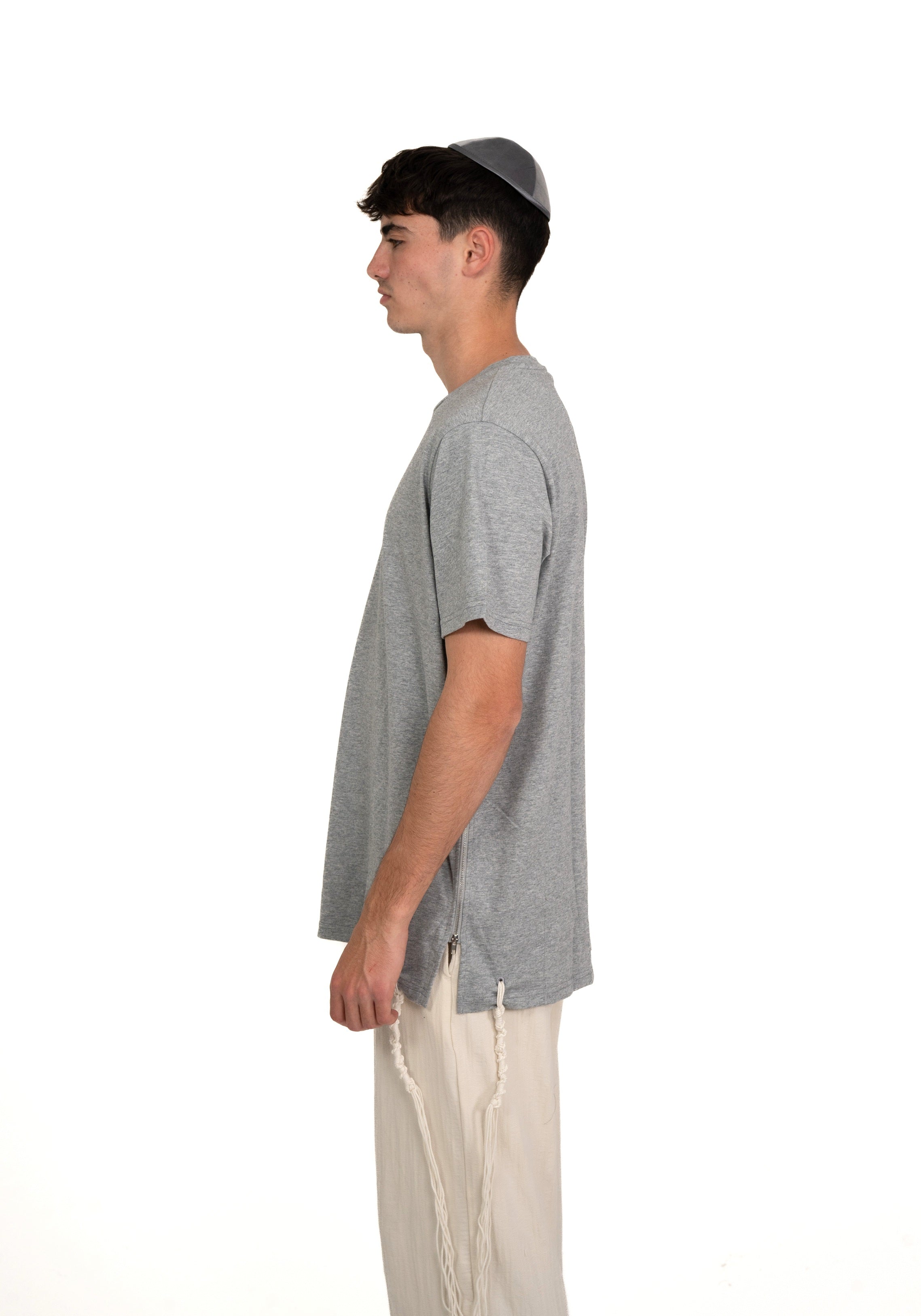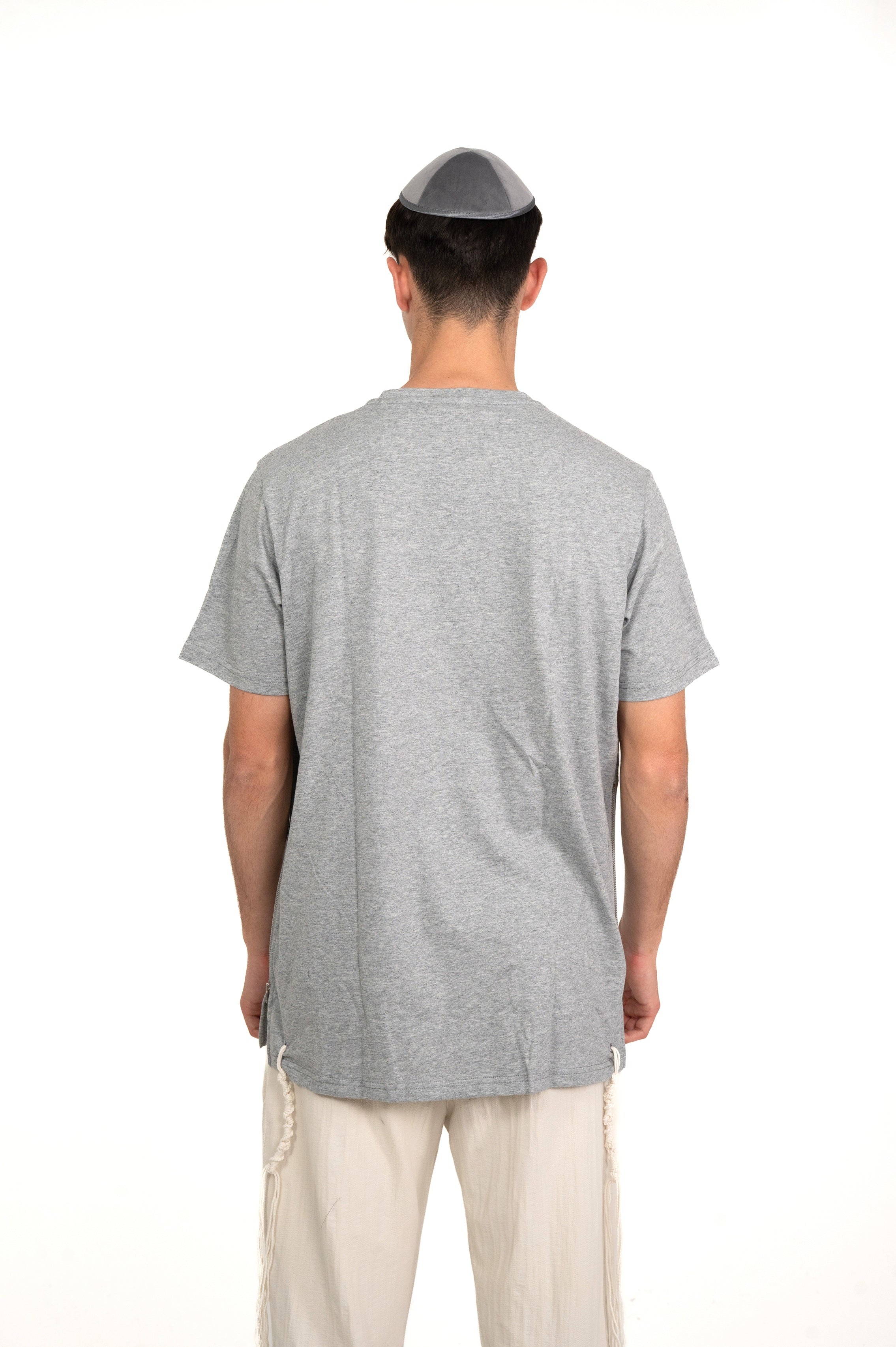 T-shirt Tsitsit Uni en Coton Premium – Gris Chiné | Collection Eliorness